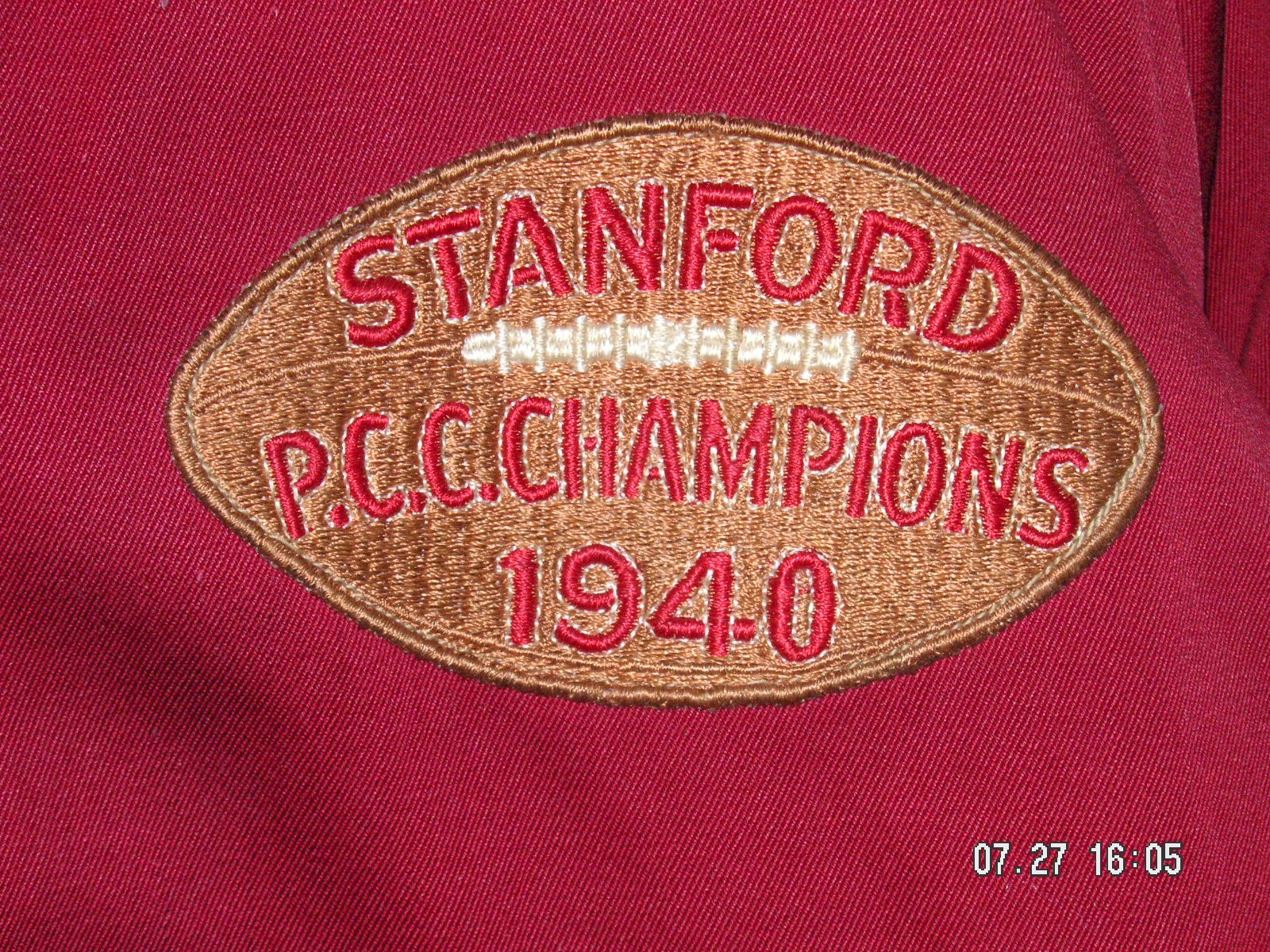 Stanford University jacket with a football shaped