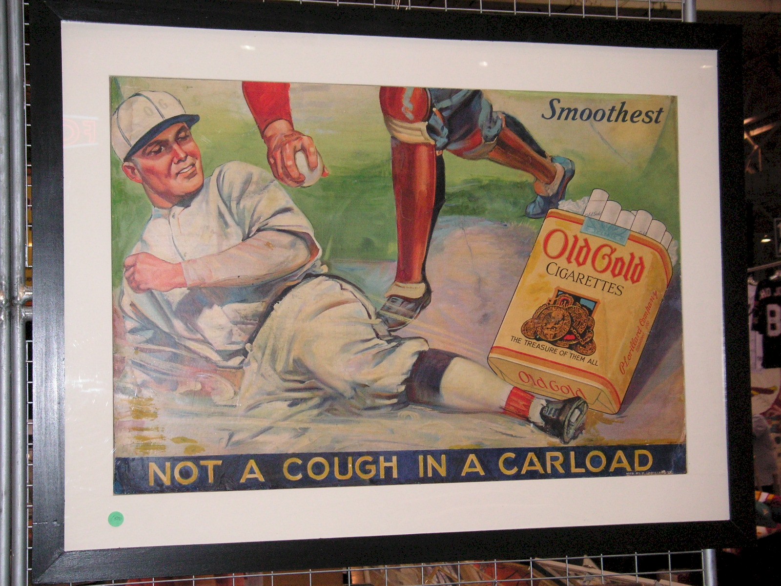 20 3/4" tall, framed advertising sign for Old Gold cigarettes,