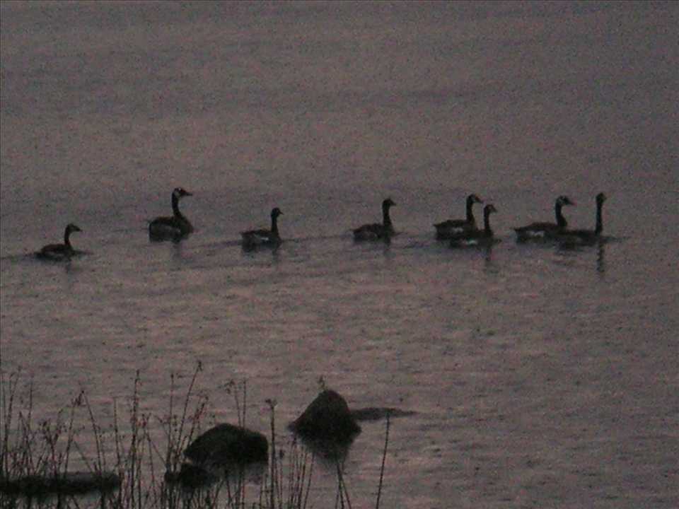 a group of geese were tranquilly paddling out into the lake...It seemed