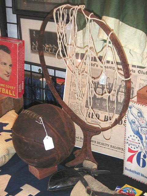 Reizes, from Mesa, AZ. Price: rim and net $250.00, ball $250.00 . Hank was sharing a booth with John F. Parker of 99% Basketball from Chelsea, VT. Hank is an interesting person in that he specializes in vintage basketball material, and is now selling off his collection. Good to know specialists, had never met one for