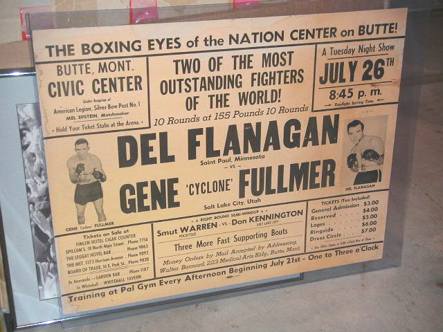 Next up, a Gene Fullmer vs. Del Flanagan boxing site poster, 22" x 28", Price: $500.00