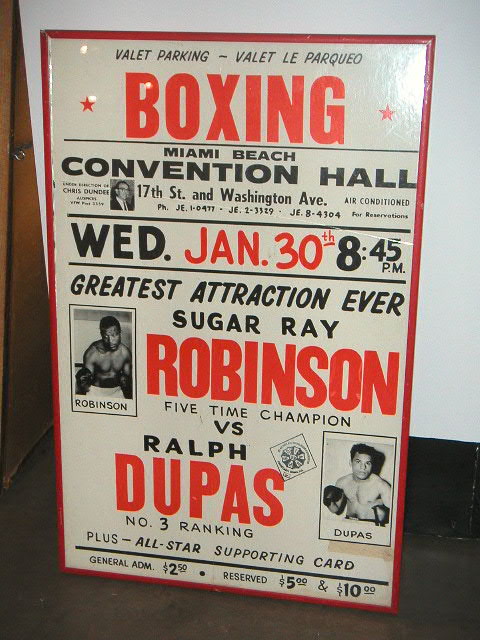 Dupas, 14"x 22", Price $500.00 . Any Sugar Ray Robinson site poster would be a find!