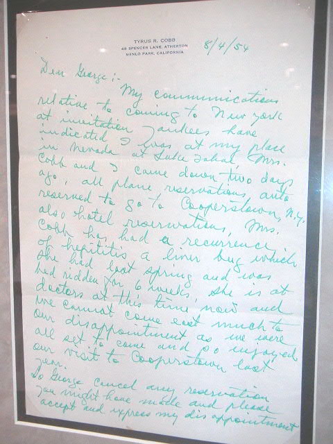 P158 O'MARY Close up Cobb letter 1st page.JPG (77326 bytes) P157 O'MARY framed Tye Cobb Letter display.JPG (80731 bytes) P158 O'MARY close up Tye Cobb letter 2nd page.JPG (67122 bytes)