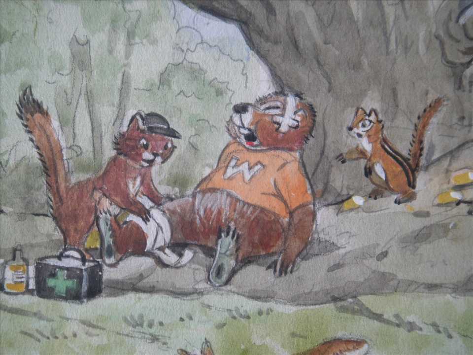 to get a closer look I could see it was a scene of beavers playing a