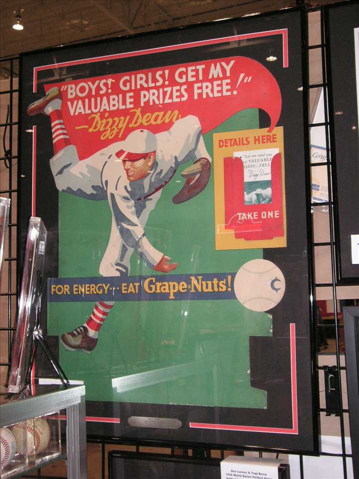 sign for Grape Nuts Cereal featuring Dizzy Dean, appeared to have