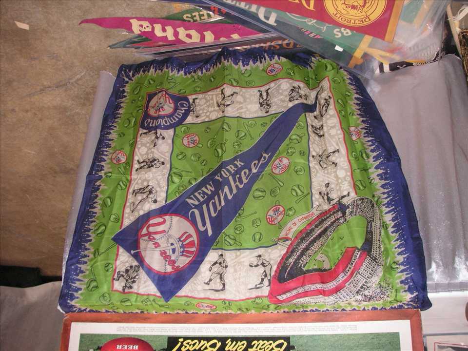 scarf emblazoned with a colorful cavalcade of baseball graphics,